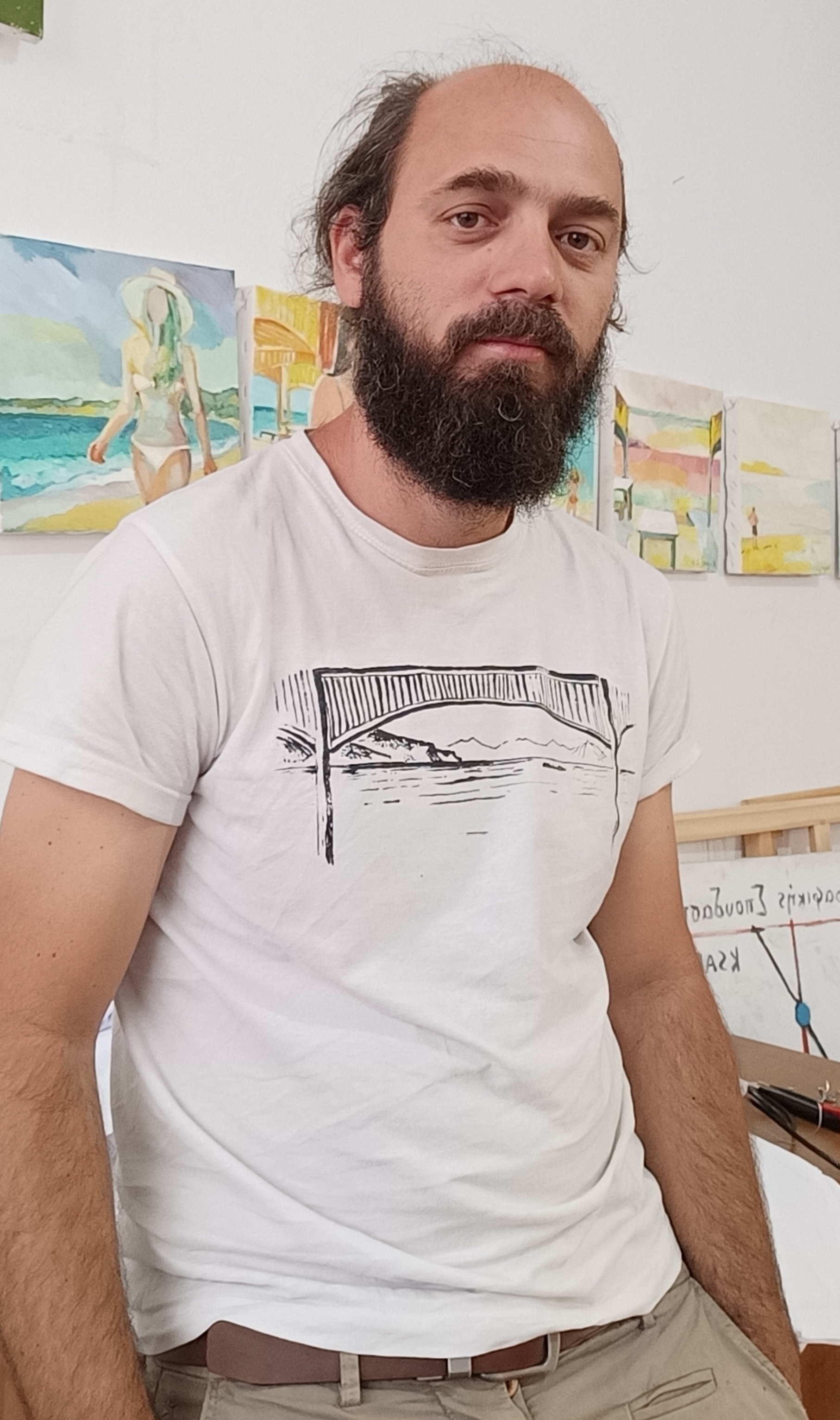 He graduated from the Athens School of Fine Arts in 2013, specializing in painting and sculpture. His works, whether paintings or sculptures, are small problems that he sets for himself and seeks to solve within the framework of the visual language. Due to his strong need to approach every kind of creative challenge, Erion Kapaj devotes a lot of time to designing and constructing various creations that combine mathematics and engineering. For him, these constructions are simply games that allow him to pass his time in a pleasant and creative way.